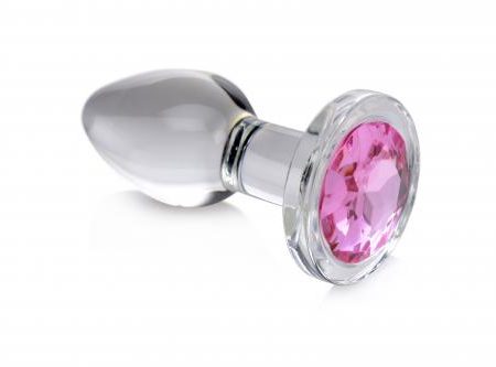 Pink Gem Glas-Analplug mit Schmuckstein – Mittelgroß