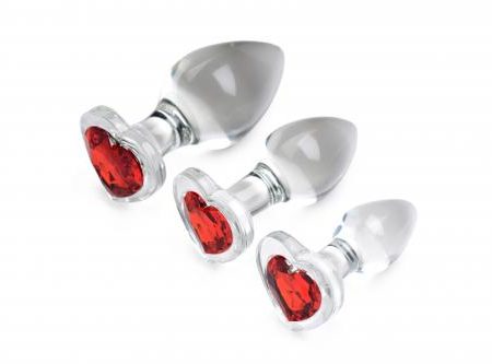 Red Heart Analplugset aus Glas mit Schmuckstein