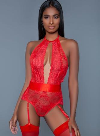 Ophelia Straps-Bodysuit aus Spitze – Rot