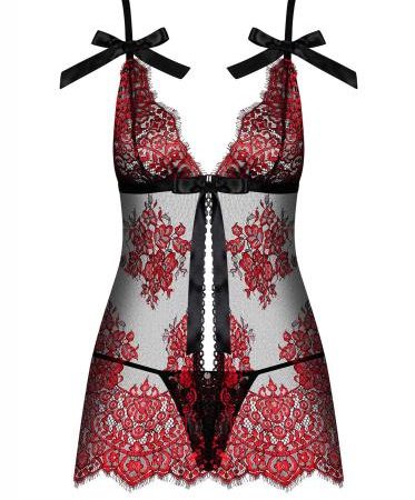 Redessia Spitze Babydoll mit String – Rot/Schwarz