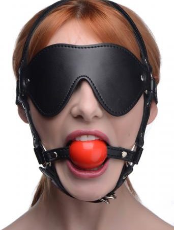 Perverses verstellbares Geschirr mit Augenbinde und Ballknebel