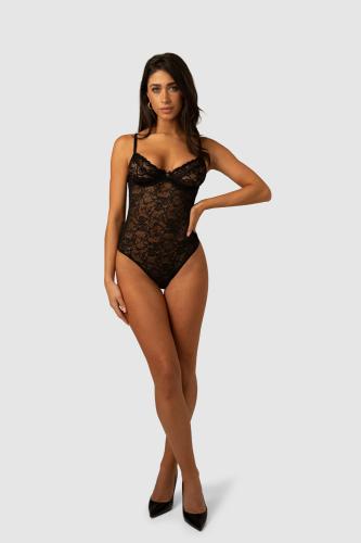 Verführerischer Body aus romantischer Spitze. Mit Bügel-Cups und verstellbaren Trägern. Ein schönes, sinnliches Basic für jede Frau.