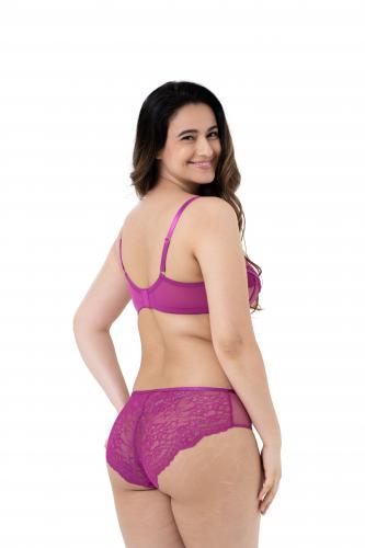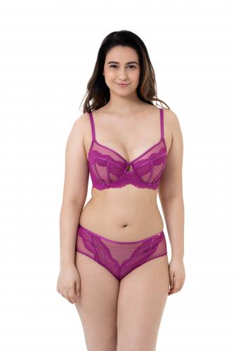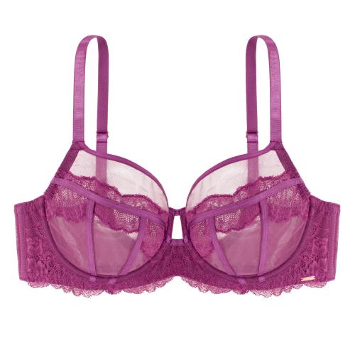 Sinnlicher BH aus sehr feinem, transparentem Mesh-Material, mit Spitzendetails verziert. Dieses Zusammenspiel der Materialien schafft einen einzigartigen, sinnlichen Look. Verstellbare Schulterriemen und 3×3 Hakenverschluss am Rücken. Zarte, aber auch robuste Materialien für einen guten Sitz.