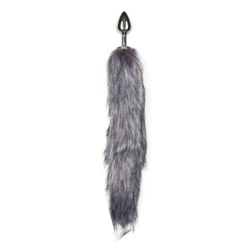 Medium zilverkleurige buttplug met vossenstaart