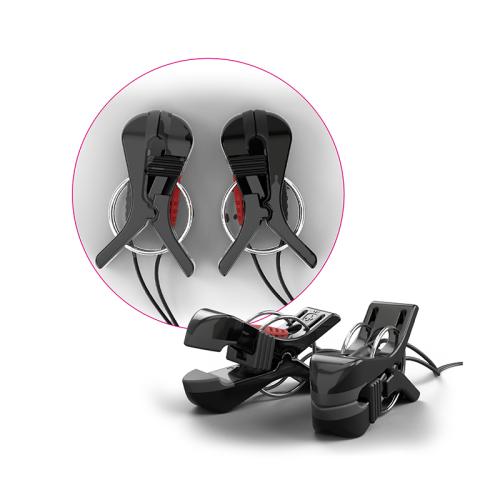 Diese bipolaren, elektrisch leitenden Körperklemmen erzeugen ein prickelndes, lustvolles Vergnügen an Brustwarzen, Schamlippen und anderen Körperregionen. Da jede der Klemmen bipolar ist, wird immer nur das Gewebe stimuliert, das exakt zwischen den beiden Hälften liegt, so ist auch die Stimulation beider Brustwarzen gleichzeitig gefahrlos möglich. Die Goldkontakte der Klammern sorgen darüber hinaus für eine besonders intensive und gleichmäßige Stimulation. Lieferumfang: 1 Paar Mystim Barry Bites. Material: vergoldete Kontakte.